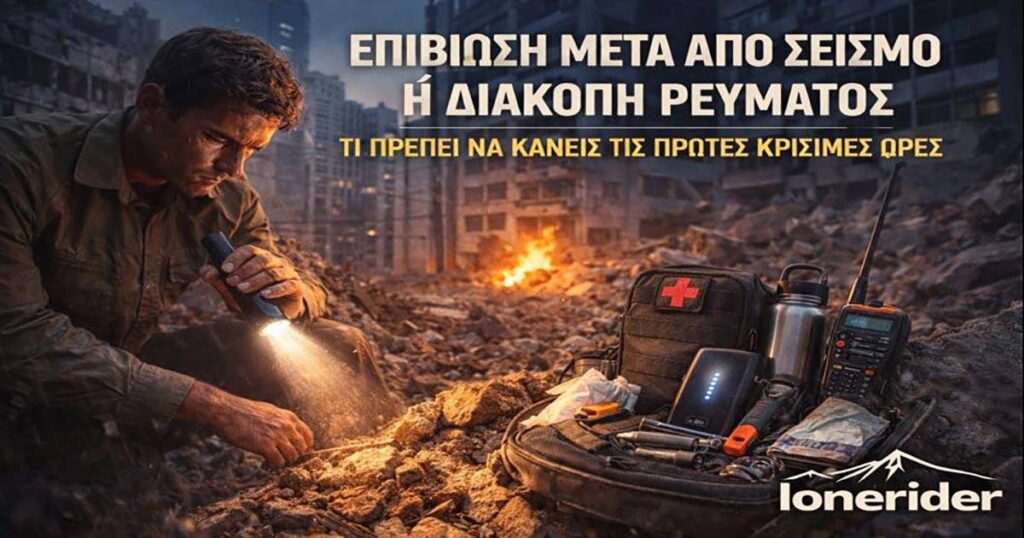 Τι πρέπει να κάνεις τις πρώτες κρίσιμες ώρες Εισαγωγή Μετά από έναν σεισμό ή μια γενικευμένη διακοπή ρεύματος: δεν υπάρχουν οδηγίες δεν υπάρχουν άμεσες βοήθειες δεν λειτουργεί τίποτα όπως πριν Οι πρώτες 24–72 ώρες είναι κρίσιμες.Εκεί δεν κερδίζει ο δυνατός, αλλά ο ψύχραιμος και προετοιμασμένος. ⚠️ Οι βασικοί κίνδυνοι μετά τον σεισμό Μετασεισμοί Πυρκαγιές από […]